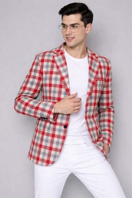 The Arkansas Heritage Plaid Blazer is designed for men who want their style to speak before they do. Inspired by classic collegiate aesthetics, this blazer features a striking crimson red base layered with clean white and black plaid lines, creating a look that feels both timeless and unmistakably powerful.