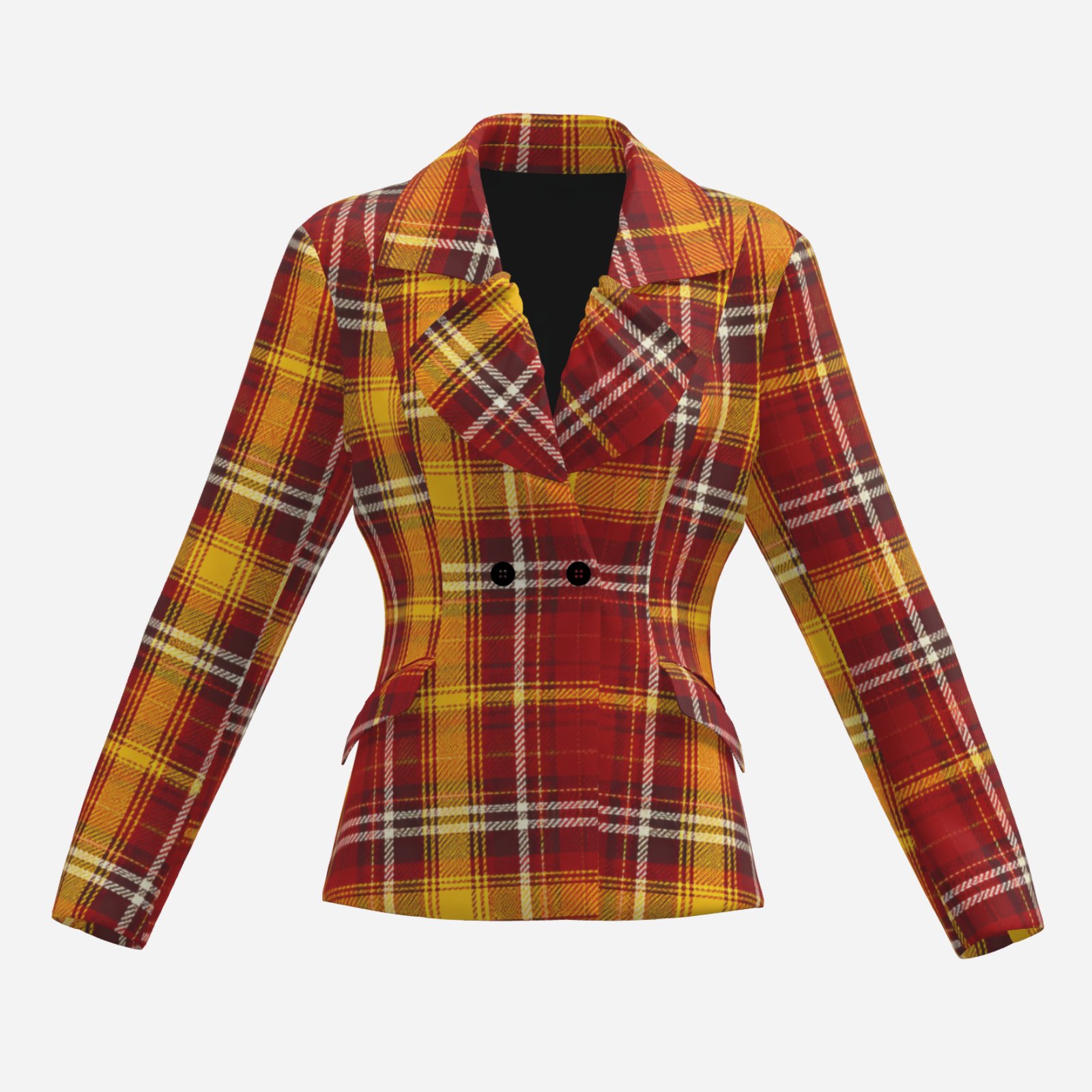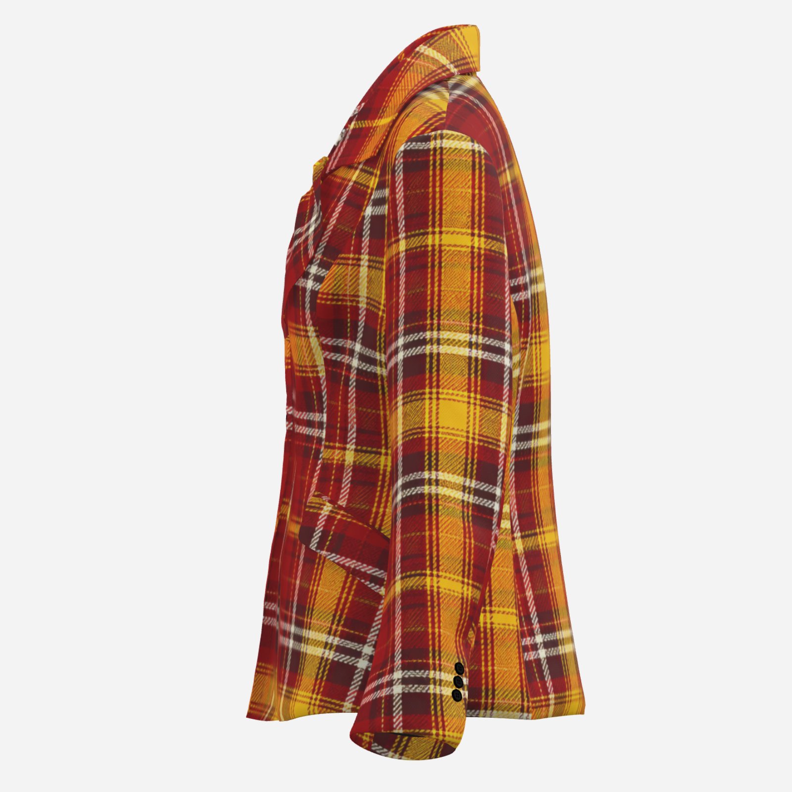 The California Trojan Legacy Plaid Blazer for women is designed for confident women who want their style to reflect strength, tradition, and unmistakable presence. Featuring a striking blend of deep cardinal red, rich golden yellow, and subtle dark accent lines, this tartan plaid pattern delivers a look that is bold, refined, and timeless.