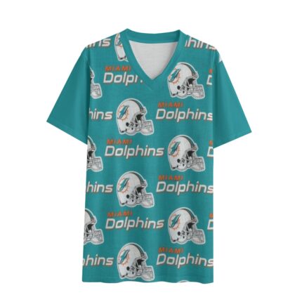 Miami Dolphins Zubaz Miami Dolphins Zubaz Eco-friendly All-over Print Unisex V-neck T-Shirt – Bring the vibrant energy of Miami to