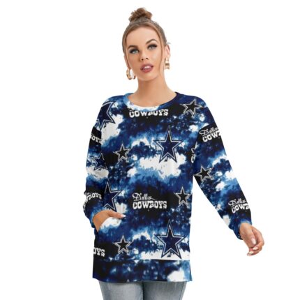 Dallas Cowboys Zubaz All-Over Print Women’s Side Split O-neck Sweatshirt