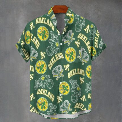 Oakland Athletics Men’s Stand Collar Shirt|110GSM Imitation Flax