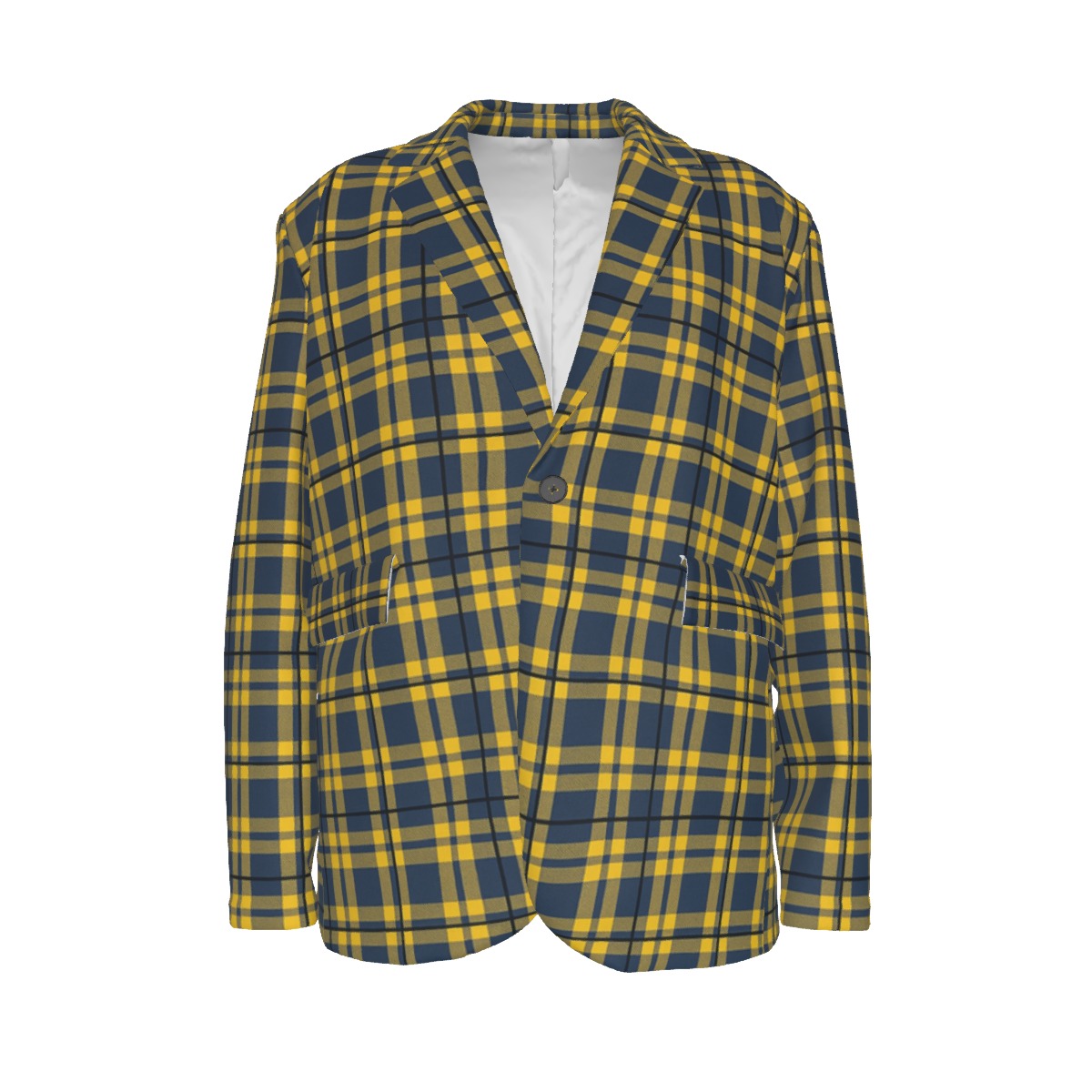 Designed with a flat lapel collar and a clean, structured silhouette, this blazer transitions seamlessly from game day weekends to city outings, casual gatherings, and elevated everyday wear. The balanced color palette makes it striking without being overpowering — a true statement of taste rather than trend.