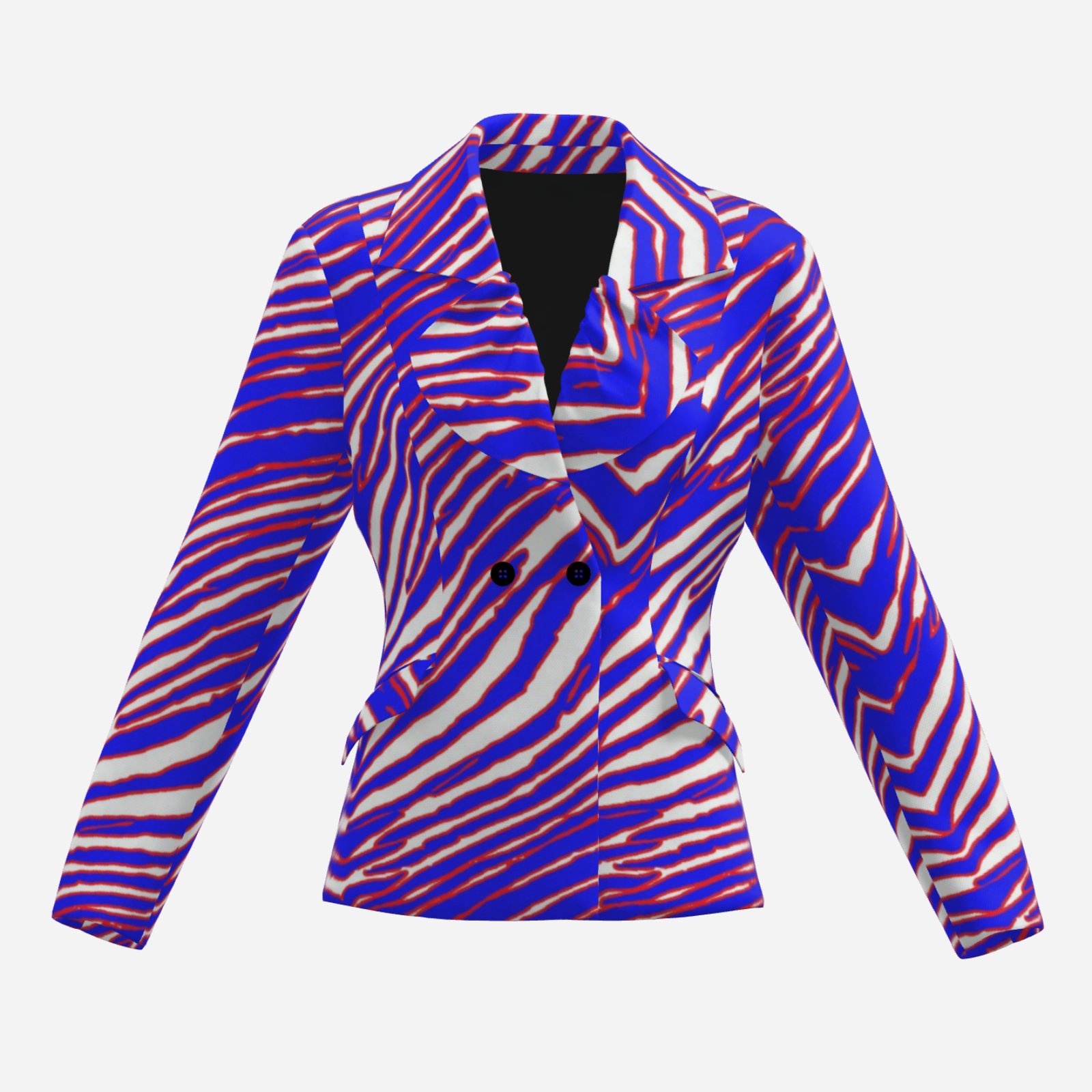 Buffalo Bills Zebra Game Day Women Blazer Jacket Red White Blue Football Fan Style