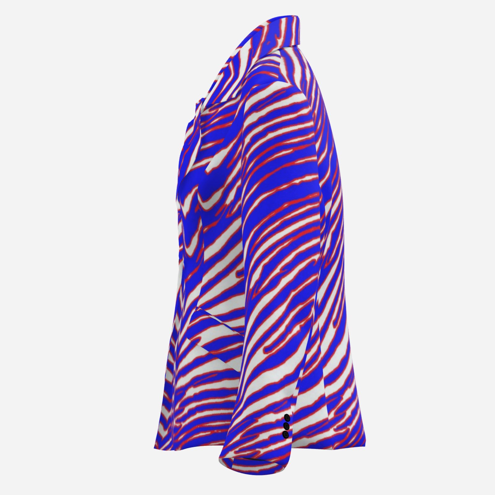 If you are searching for a zebra football blazer, red white blue game day jacket, or bold Buffalo football fan outfit, this piece delivers style, comfort, and unmistakable presence.
