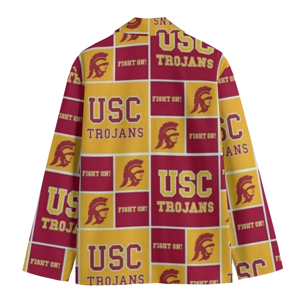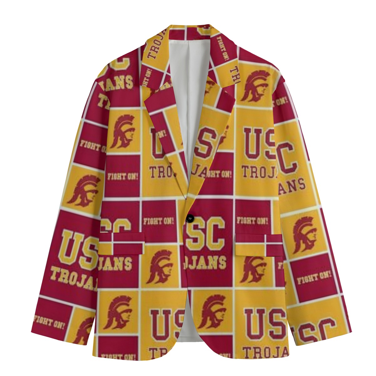 Featuring a timeless flat lapel collar and a relaxed yet structured silhouette, this blazer is perfect for game day looks, campus events, alumni gatherings, and elevated streetwear outfits. Its unisex design ensures a comfortable and flattering fit for both men and women, making it a must-have piece for any Trojans fan wardrobe.