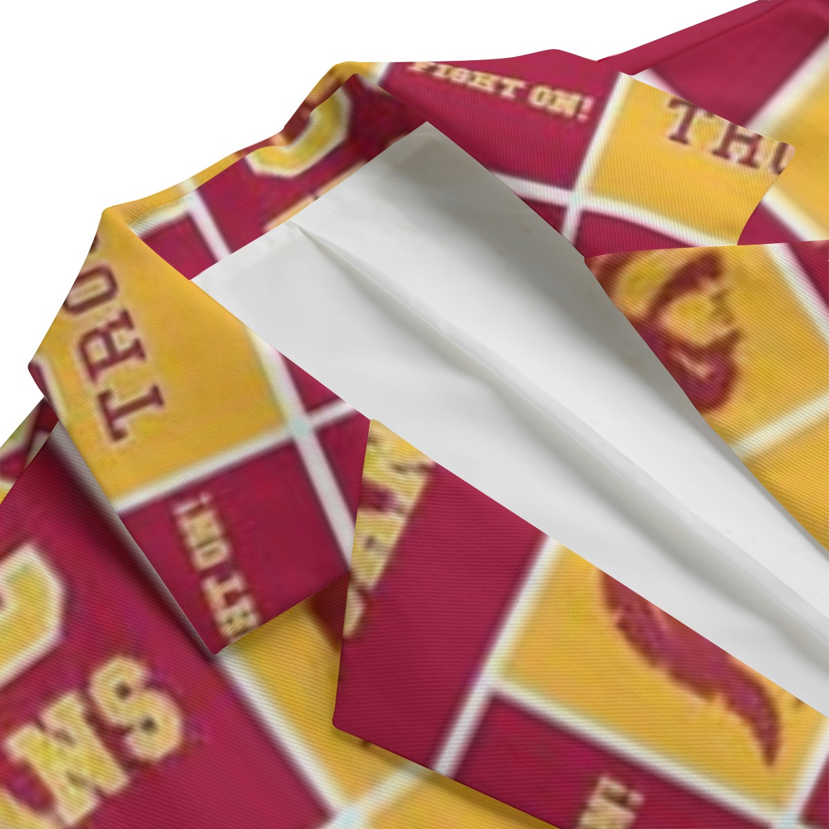 Step into refined collegiate style with the Trojans California Casual Flat Lapel Collar Blazer, designed for fans who want to represent their team with confidence, elegance, and everyday versatility. Showcasing the iconic Cardinal Red and Gold color palette, this blazer blends classic college spirit with modern smart-casual fashion.