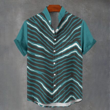 Philadelphia Eagles Zubaz All-Over Print Men’s Stand Collar Shirt|110GSM Imitation Flax