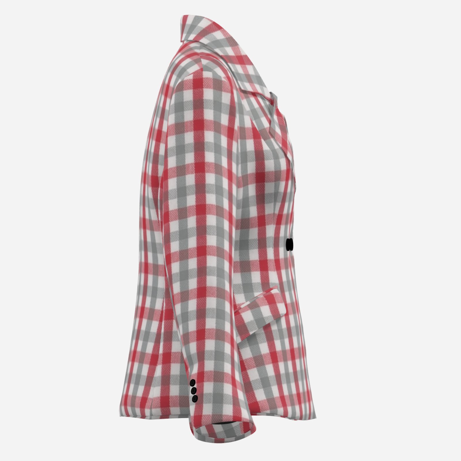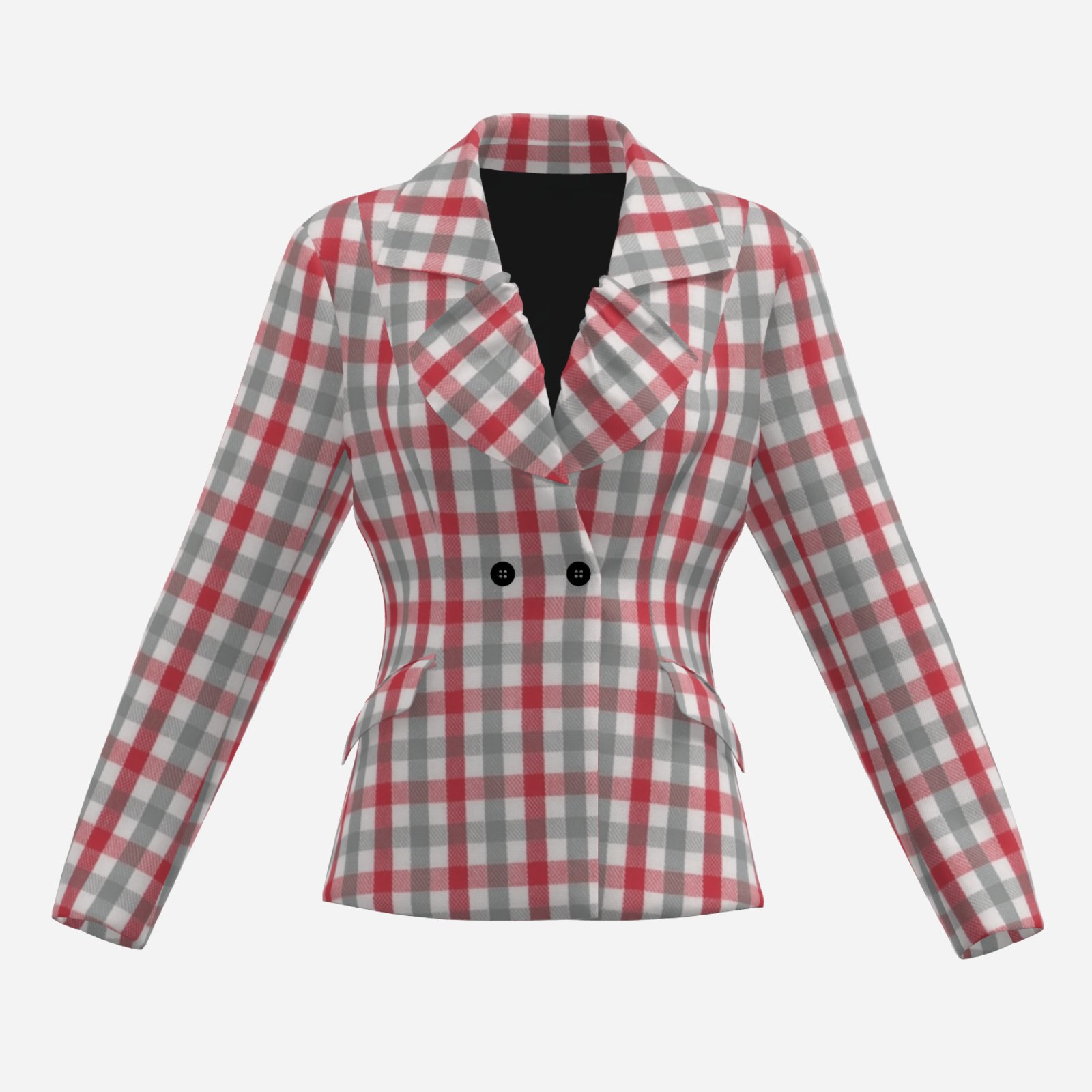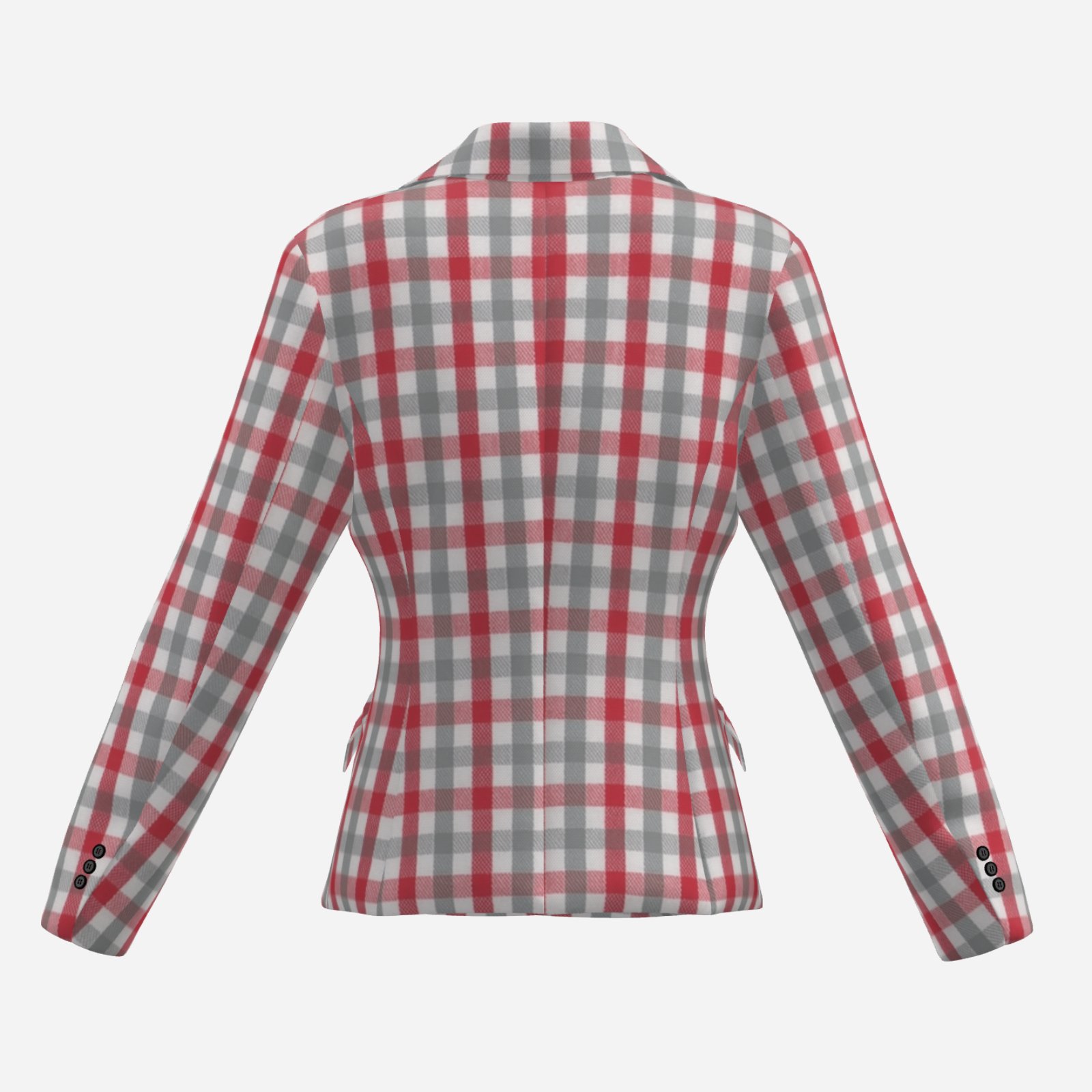 The tailored, double-breasted design enhances the waist while maintaining a sharp, polished appearance. The crimson and grey plaid pattern delivers a strong visual identity rooted in college-inspired fashion, making this blazer perfect for game day outfits, smart-casual styling, or standout everyday wear.