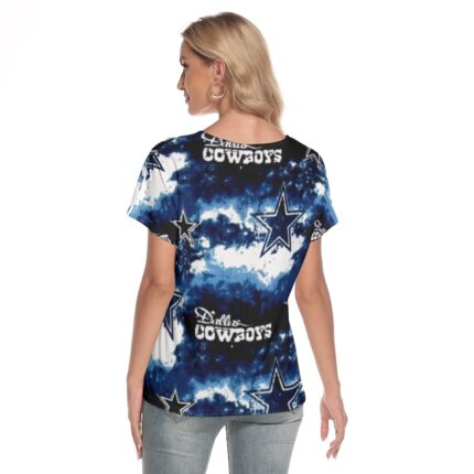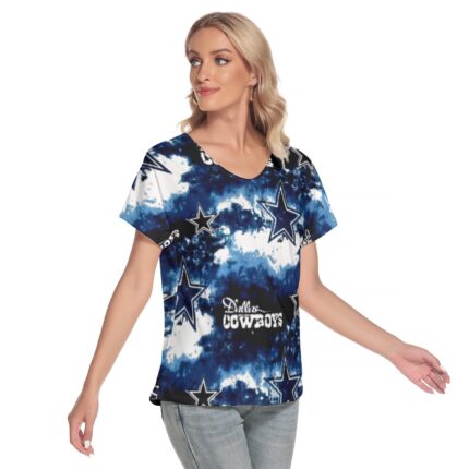 Dallas Cowboys Zubaz Dallas Cowboys Zubaz All-Over Print Women’s Loose V-neck Short Sleeve T-shirt – Show your star pride with