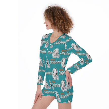 Miami Dolphins Zubaz Miami Dolphins Zubaz All-Over Print One-Piece Women’s Pajamas – Bring the vibrant energy of Miami to your