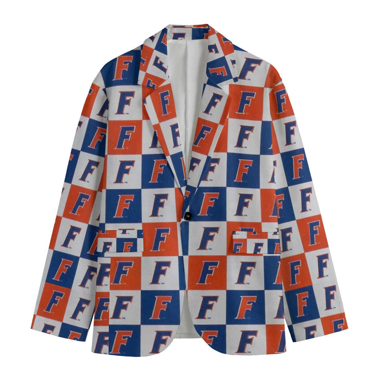Florida Gators All-Over Print Casual Flat Lapel Collar Blazer – Royal Blue and Orange