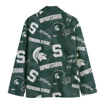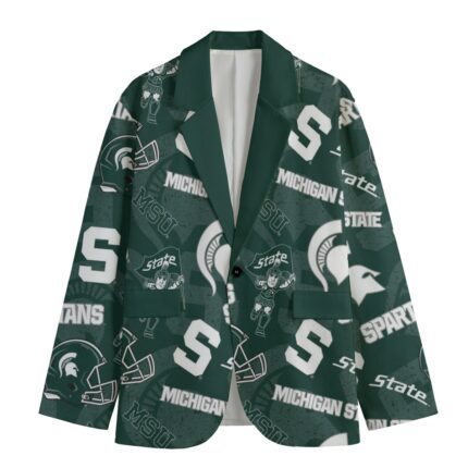 Designed with a timeless flat lapel collar and a comfortable, structured silhouette, this blazer transitions effortlessly from game day outfits to everyday smart-casual wear. Its unisex design ensures versatility and comfort for both men and women, making it an essential addition to any Michigan State fan wardrobe.