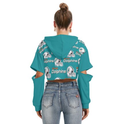 Miami Dolphins Zubaz All-Over Print Women’s Heavy Fleece Hoodie With Hollow Out Sleeve – Bring the vibrant energy of Miami