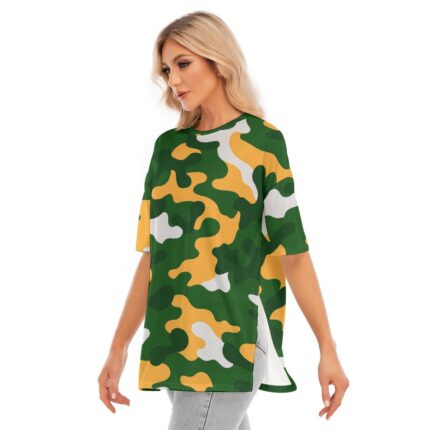 Support the Green Bay Packers in style with this premium Green Bay Packers All-Over Print Women's O-Neck T-Shirt|180 GSM Jersey.