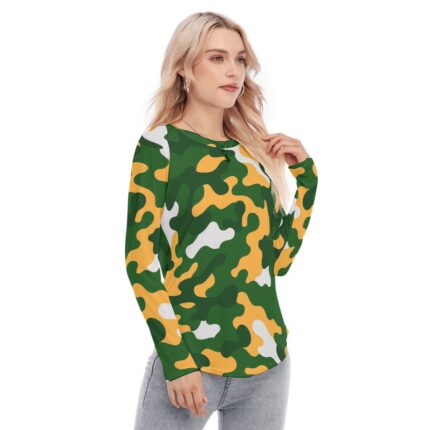 Green Bay Packers All-Over Print Women’s Raglan Sleeves U-Shaped Hem Long Sleeves Blouse