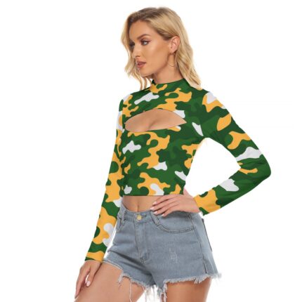 Green Bay Packers All-Over Print Women’s Hollow Chest Keyhole Tight Crop Top