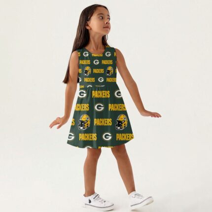 Green Bay Packers All-Over Print Girls Sleeveless A-Line Dress — premium fan gear built for comfort, style, and game day energy.