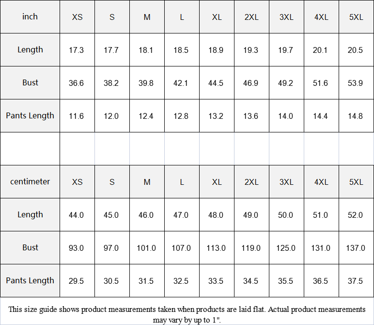 | centimeter | XS | S | M | L | XL | 2XL | 3XL | 4XL | 5XL |