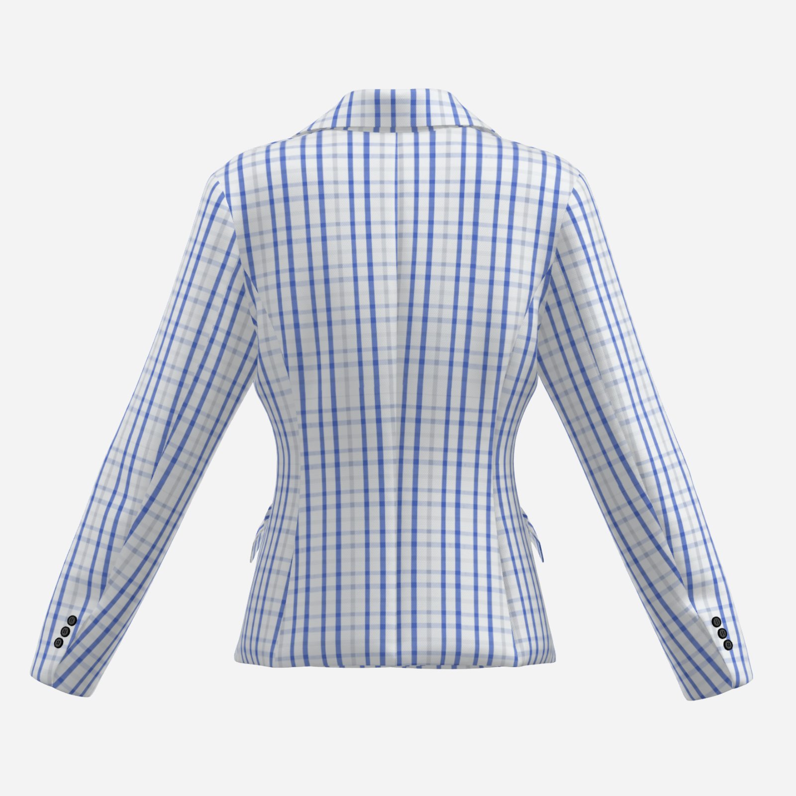 Perfect for fall game day weekends, city walks, brunch dates, or smart casual occasions, this blazer pairs beautifully with denim, white trousers, or monochrome layers, allowing the blue-and-white plaid to stand out with sophistication.