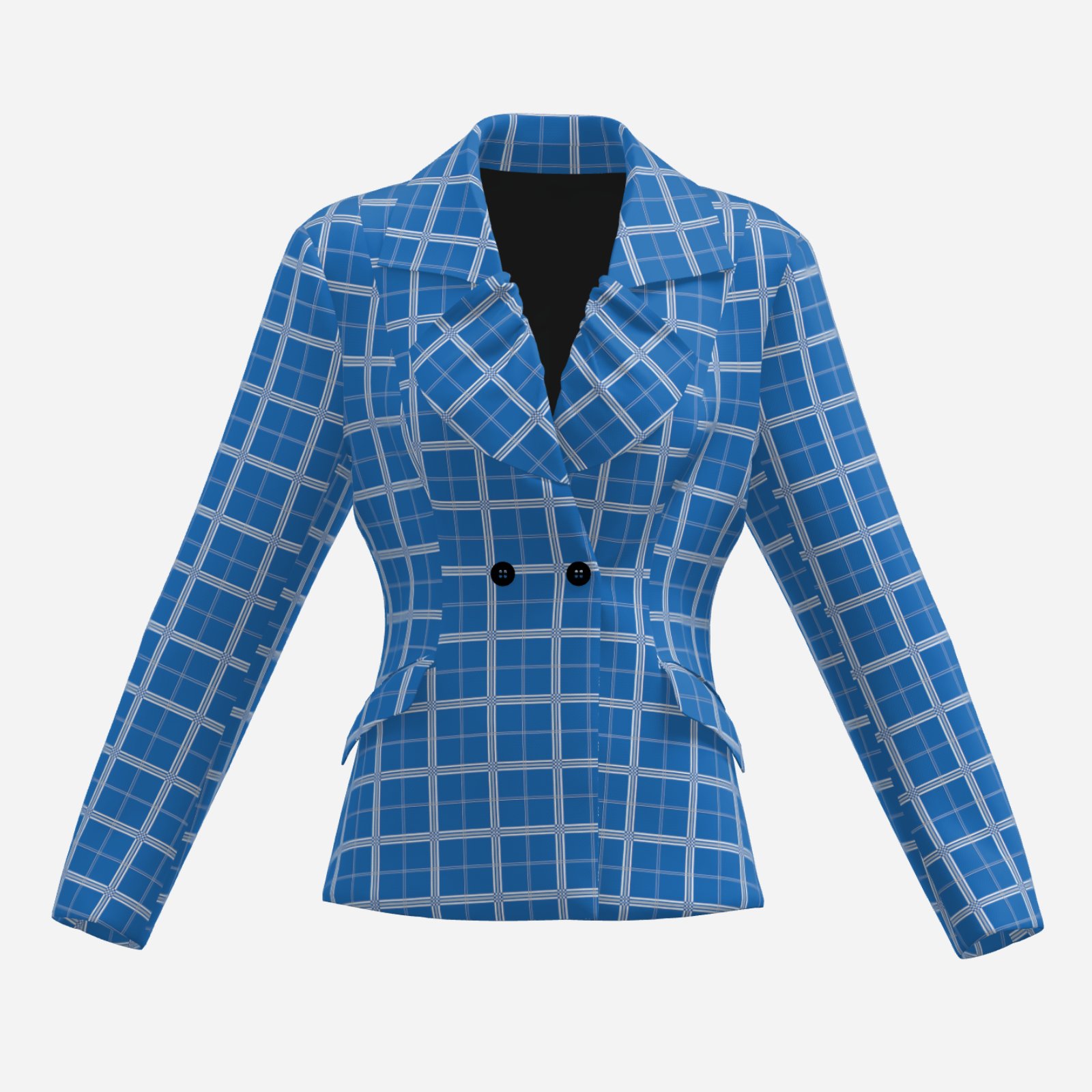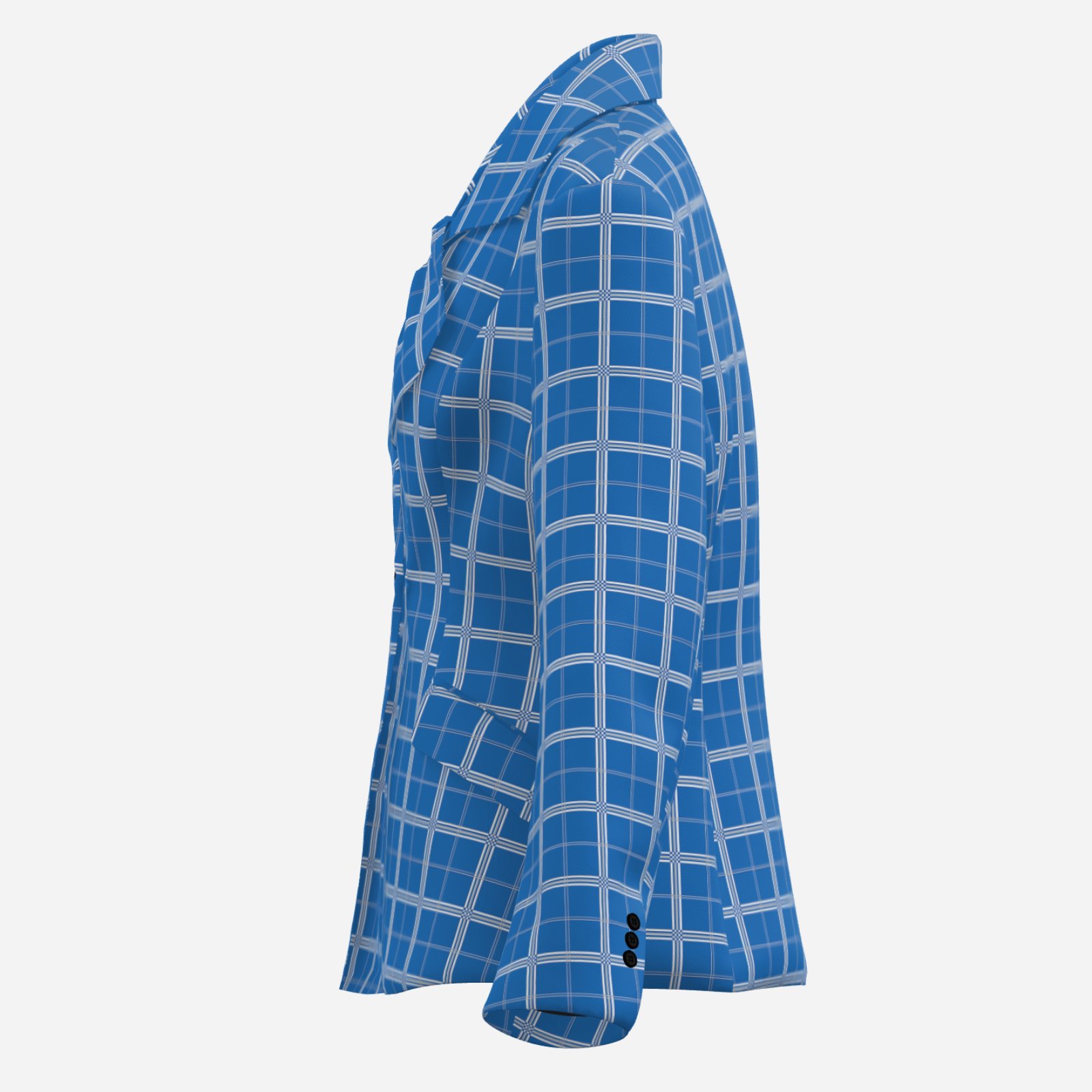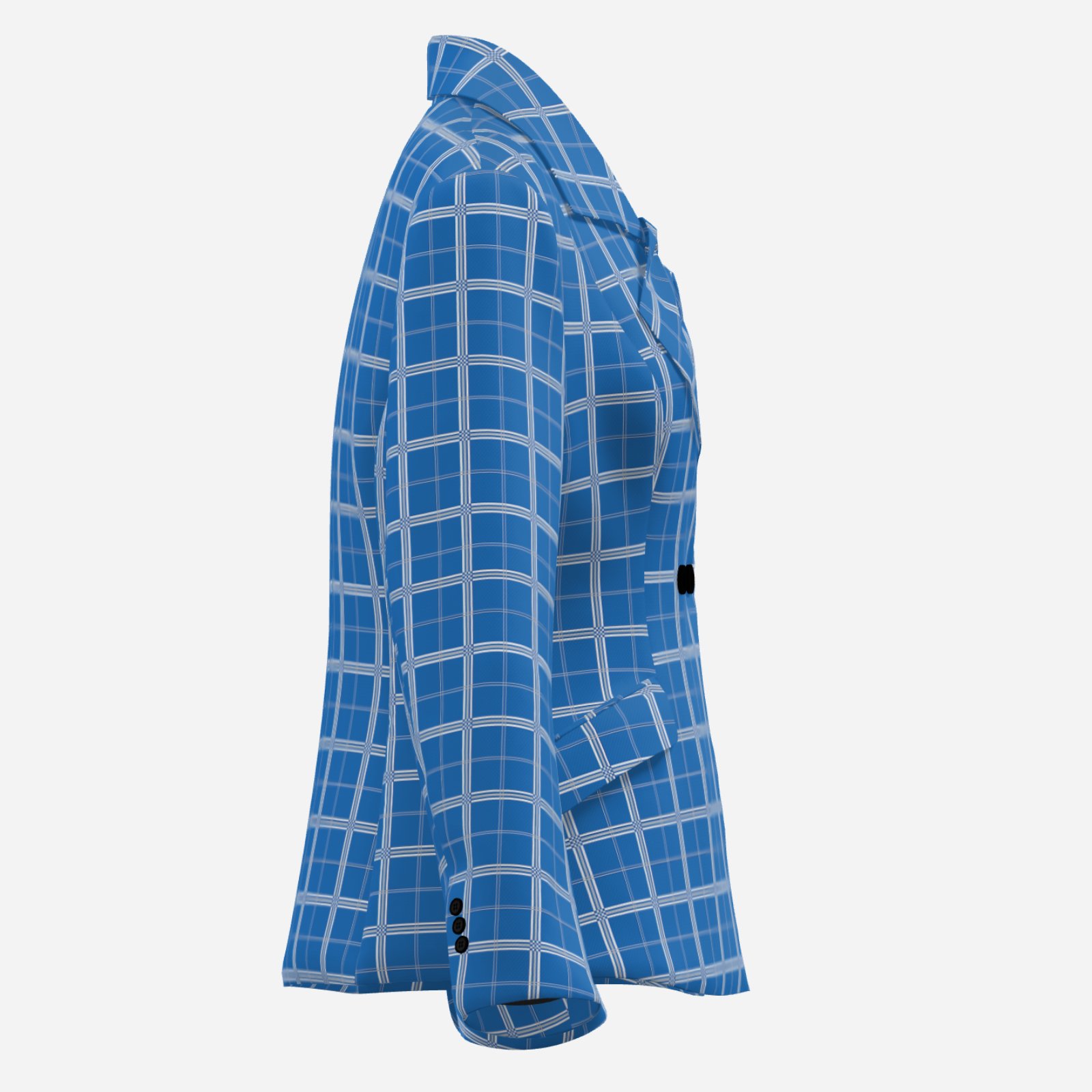 🔵 Kentucky-Inspired Blue and White Tartan Plaid Women’s Blazer – Urban City and Game Day Style