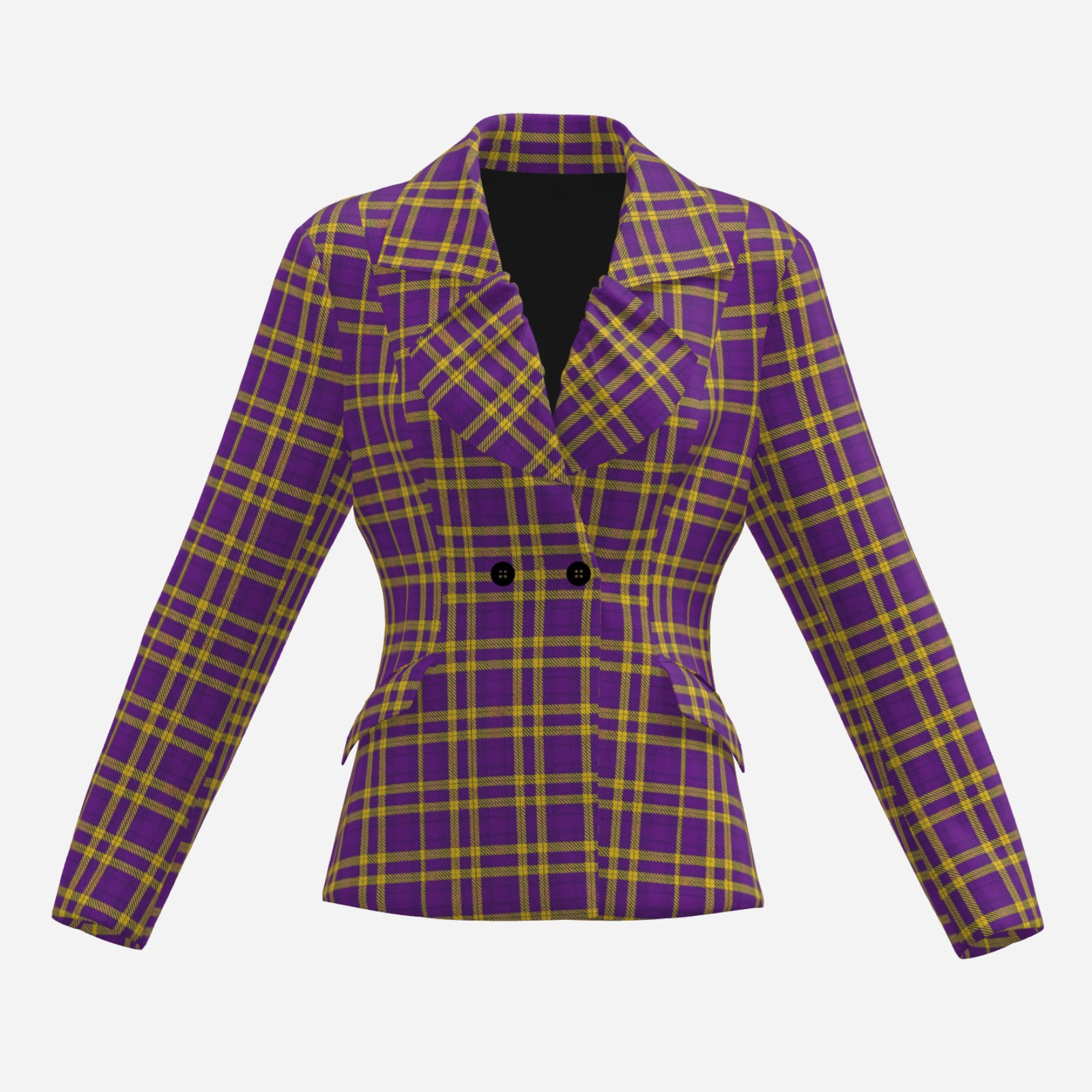 🟣 Louisiana-Inspired Purple and Gold Tartan Plaid Women’s Blazer – Urban City and Game Day Style
