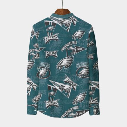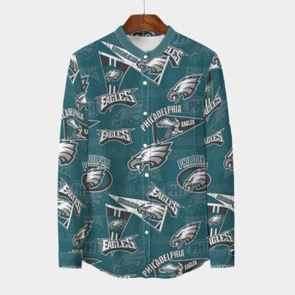 Philadelphia Eagles Zubaz Philadelphia Eagles Zubaz All-Over Print Men’s Stand Collar Shirt With Long Sleeve|110GSM Imitation Flax – Stand out