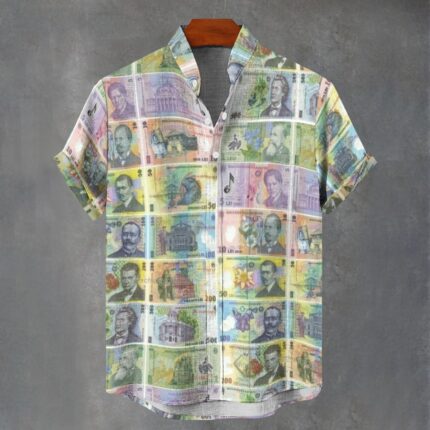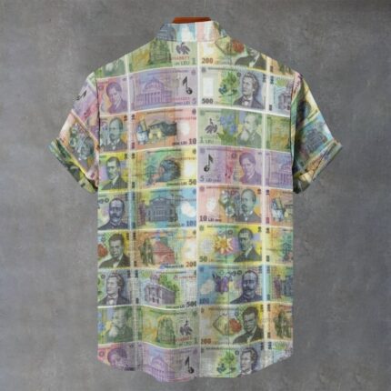 Romania money print Men’s Stand Collar Shirt camasa cu imprimeu din bani romanesti
