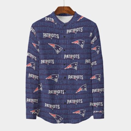 New England Patriots All-Over Print Men’s Stand Collar Shirt With Long Sleeve|110GSM Imitation Flax – Premium NFL Game Day Gear