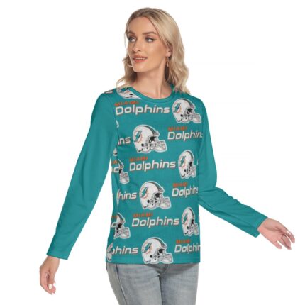 Miami Dolphins Zubaz All-Over Print Women’s O-neck Long Sleeve T-shirt – Bring the vibrant energy of Miami to your game