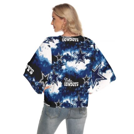 Dallas Cowboys Zubaz All-Over Print Women’s Bat Sleeve Light V-neck Front Buttoned Top
