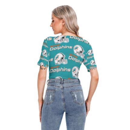 Miami Dolphins Zubaz All-Over Print Women’s Bat Sleeves V-Neck Blouse – Bring the vibrant energy of Miami to your game