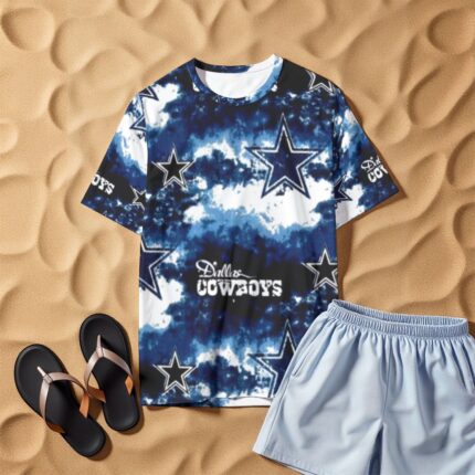 Dallas Cowboys Zubaz Dallas Cowboys Zubaz All-Over Print Men’s O-Neck T-Shirt | 190GSM Cotton – Show your star pride with