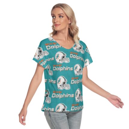 Miami Dolphins Zubaz All-Over Print Women’s Loose V-neck Short Sleeve T-shirt – Bring the vibrant energy of Miami to your