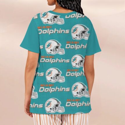 Miami Dolphins Zubaz All-Over Print Women’s Loose V-Neck Short-Sleeve T-Shirt – Bring the vibrant energy of Miami to your game