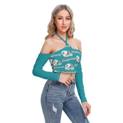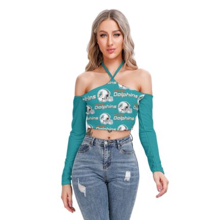 Miami Dolphins Zubaz All-Over Print Women’s Halter Lace-up Top – Bring the vibrant energy of Miami to your game day