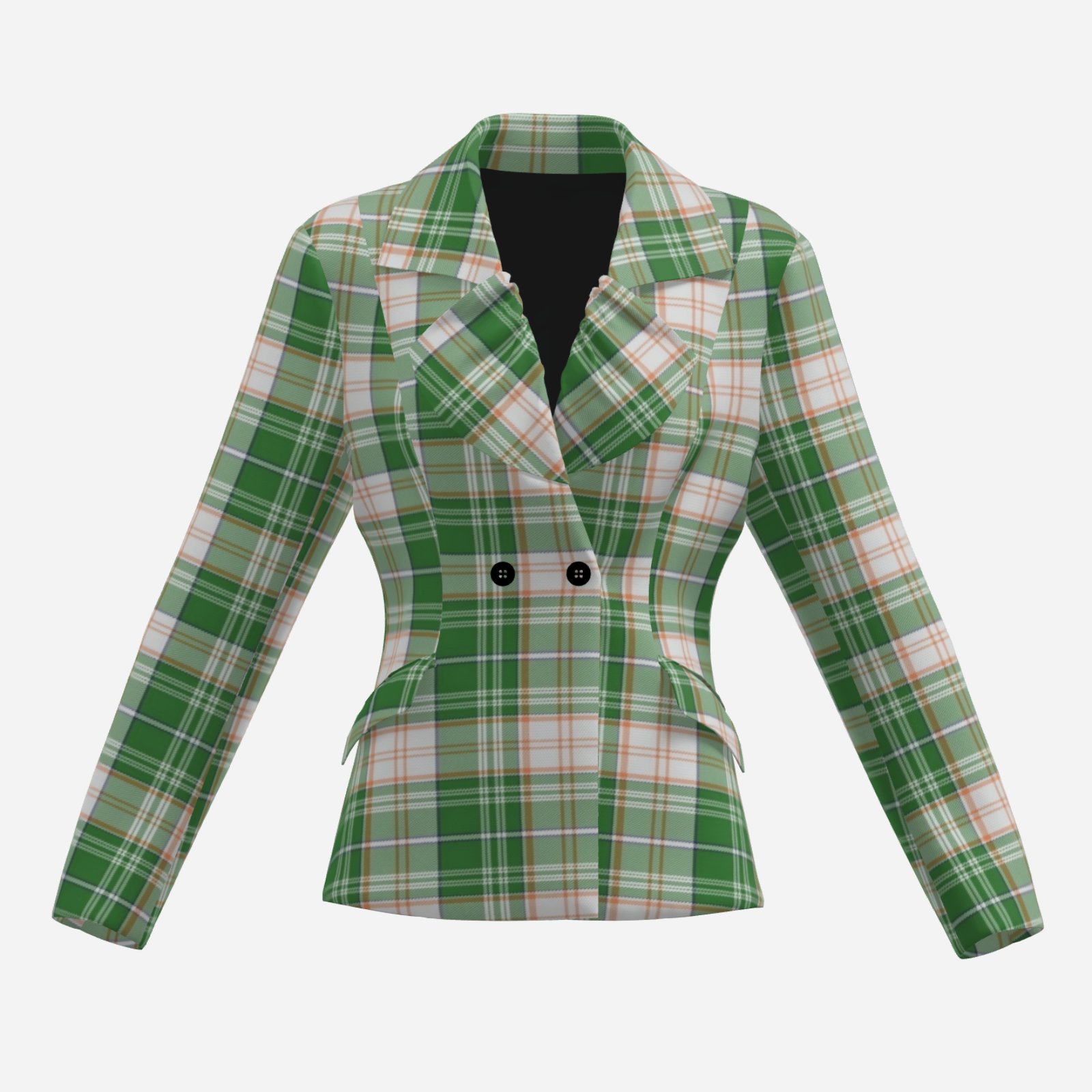 🌴 Miami-Inspired Green and Cream Tartan Plaid Women’s Blazer – Urban City and Game Day Style