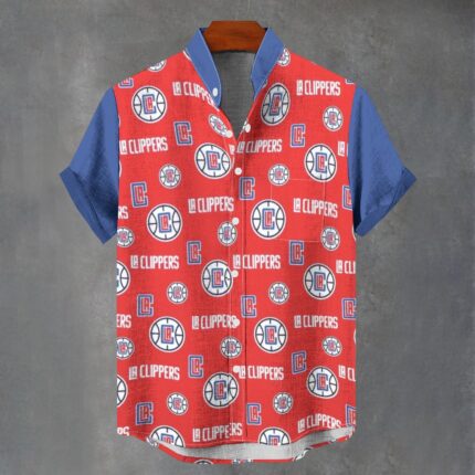 Los Angeles Clippers Men’s Stand Collar Shirt|110GSM Imitation Flax