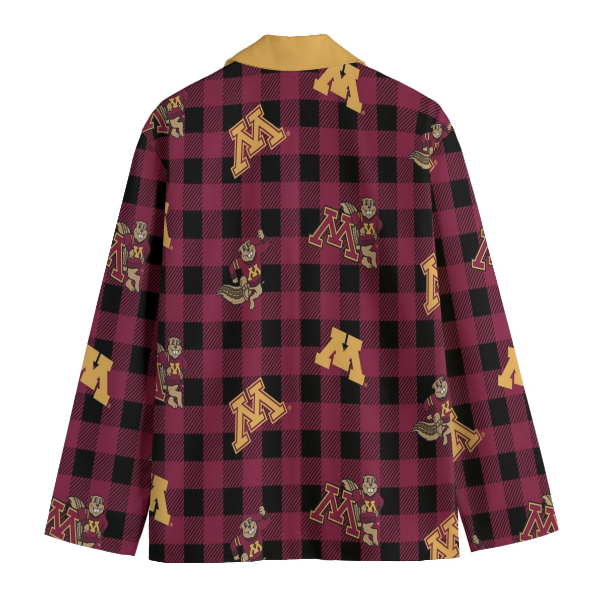 Designed with a classic flat lapel collar and a comfortable, structured silhouette, this blazer is perfect for game day outfits, campus events, alumni gatherings, and elevated streetwear styling. Its unisex design ensures versatility and comfort for both men and women, making it an essential addition to any Minnesota fan wardrobe.