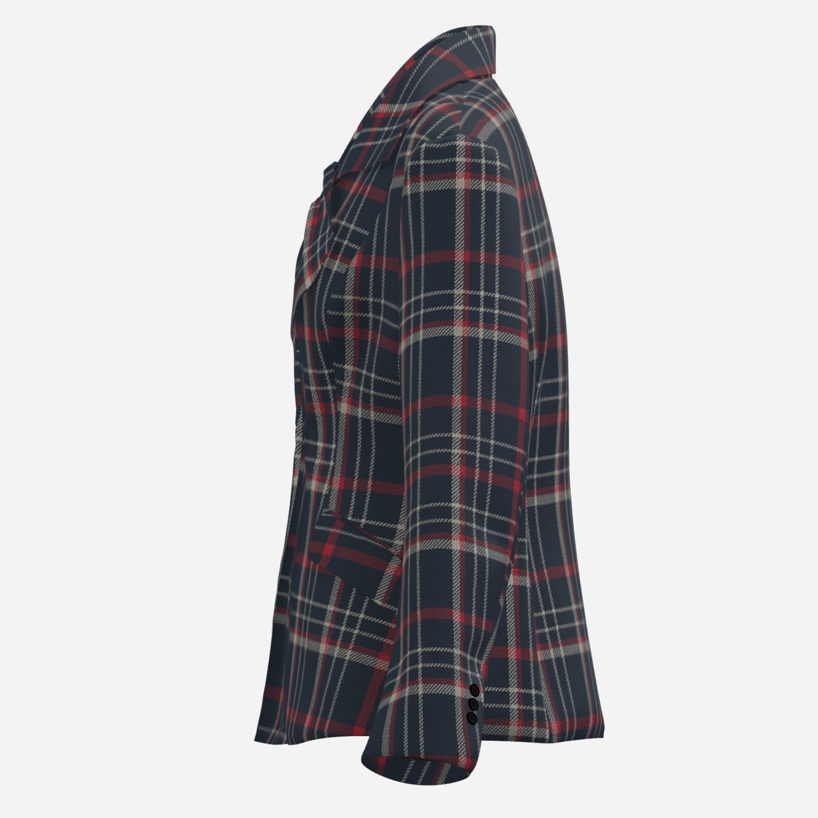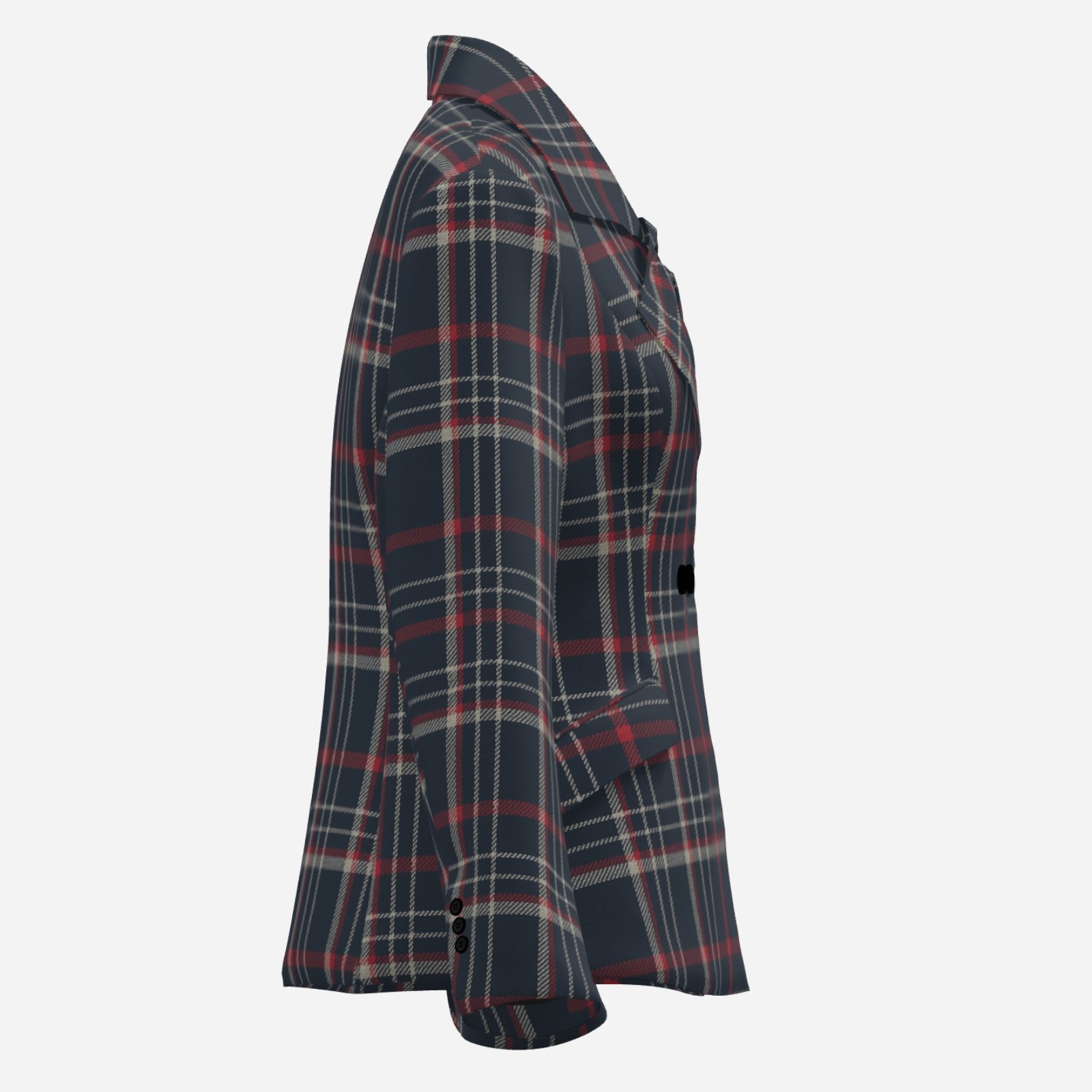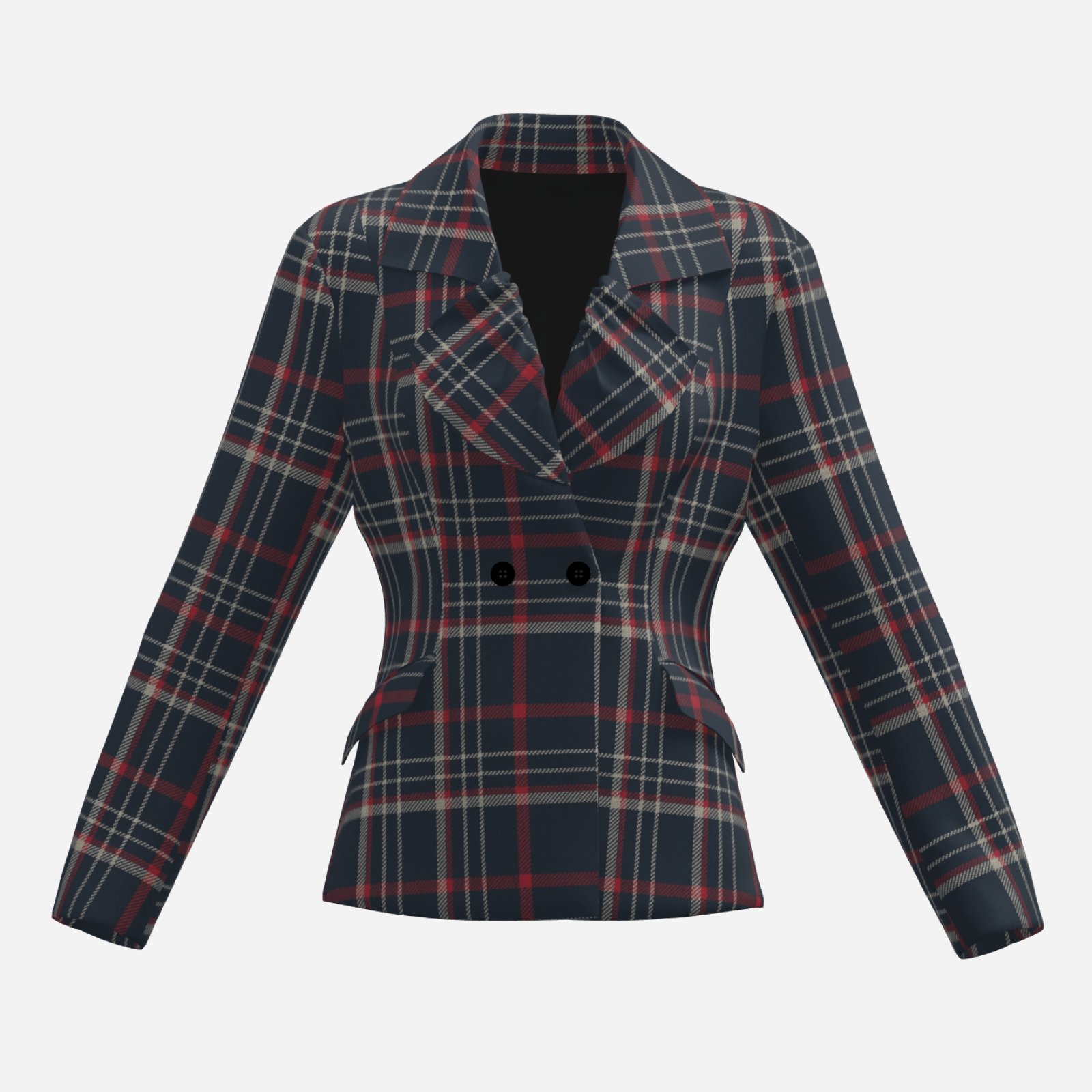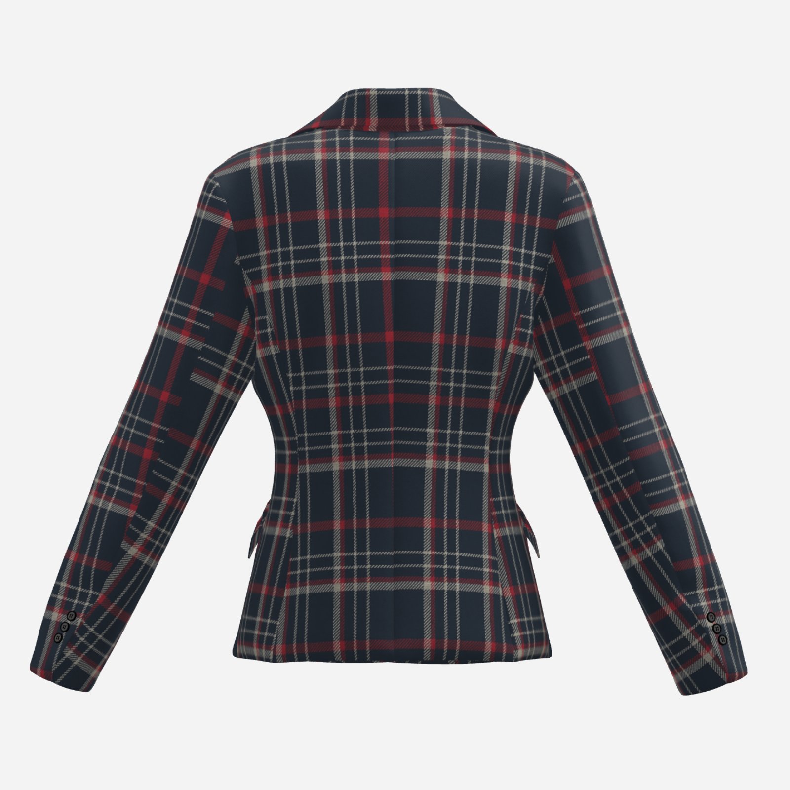 The deep navy base paired with red and white plaid lines creates a sophisticated yet energetic look, while the tailored, waist-defining fit enhances the silhouette. Perfect for game day outfits, smart casual looks, or elevated streetwear styling, this blazer is made to perform beyond trends.