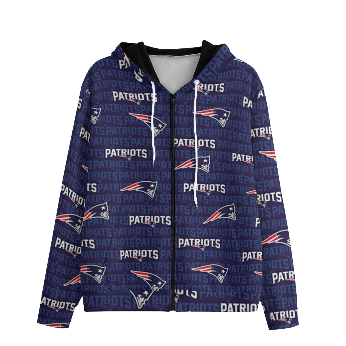 New England Patriots All-Over Print Unisex Zipper Hoodie With Black Lining