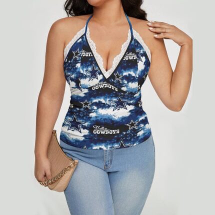 Dallas Cowboys Zubaz All-Over Print Women’s Lace-Trimmed Tie-Back Top