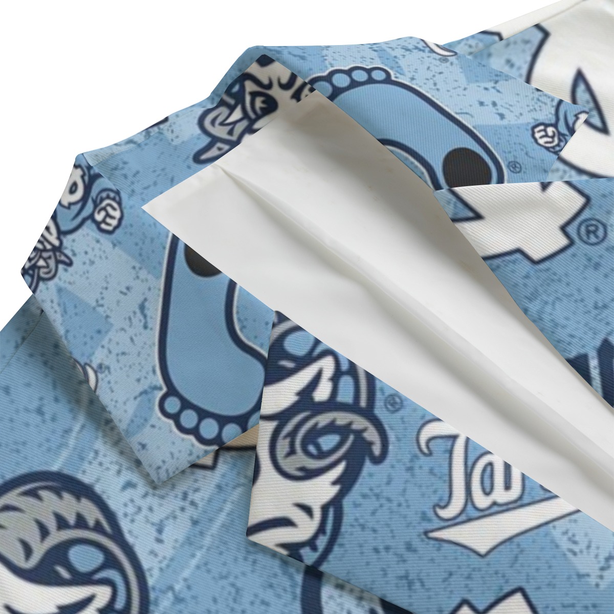 Stand out instantly with this North Carolina UNC light blue all-over print blazer, created for fans who want to take college game day style to the next level. Featuring an eye-catching collage of iconic UNC graphics and bold Carolina blue tones, this blazer transforms classic tailoring into a statement piece that commands attention.