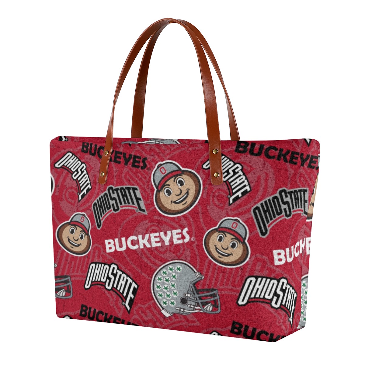 ohio state buckeyes tote bag, ohio football women tote bag, scarlet and gray shoulder bag, college football tote bag, ohio fan tote bag, varsity style tote bag, ohio sports tote bag, diving cloth tote bag, large capacity women bag, game day tote bag