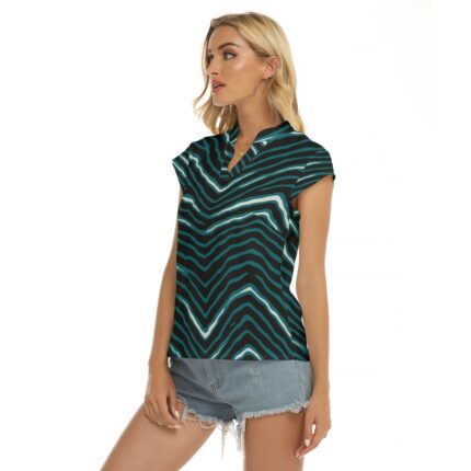 Philadelphia Eagles Zubaz All-Over Print Women’s Stacked V-neck Short Sleeve Blouse