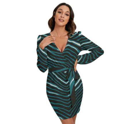 Philadelphia Eagles Zubaz Philadelphia Eagles Zubaz All-Over Print Women’s Long Sleeve Dress With Waist Belt – Stand out on game