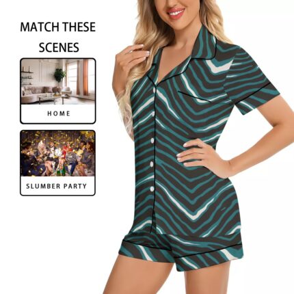 Philadelphia Eagles Zubaz Philadelphia Eagles Zubaz All-Over Print Women’s Imitation Silk Pajama Set With Short Sleeve – Stand out on