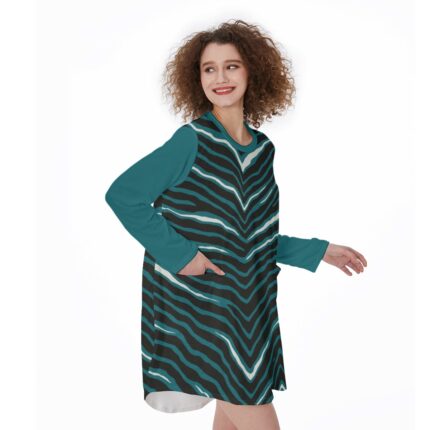 Philadelphia Eagles Zubaz All-Over Print Women’s Casual Loose Long Sleeve Dress With Pocket