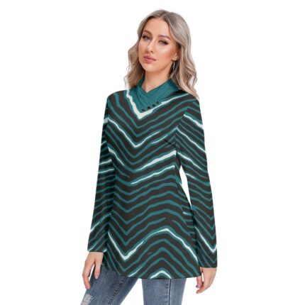 Philadelphia Eagles Zubaz All-Over Print Women’s Long-sleeved Heap-neck Slim Casual Tunic Blouse