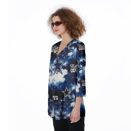 Dallas Cowboys Zubaz Dallas Cowboys Zubaz All-Over Print V-neck Women’s T-shirt With Bell Sleeve – Show your star pride with