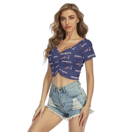 New England Patriots Zubaz New England Patriots Zubaz All-Over Print Women’s Raglan Drawstring Front Crop Tee – Show your pride